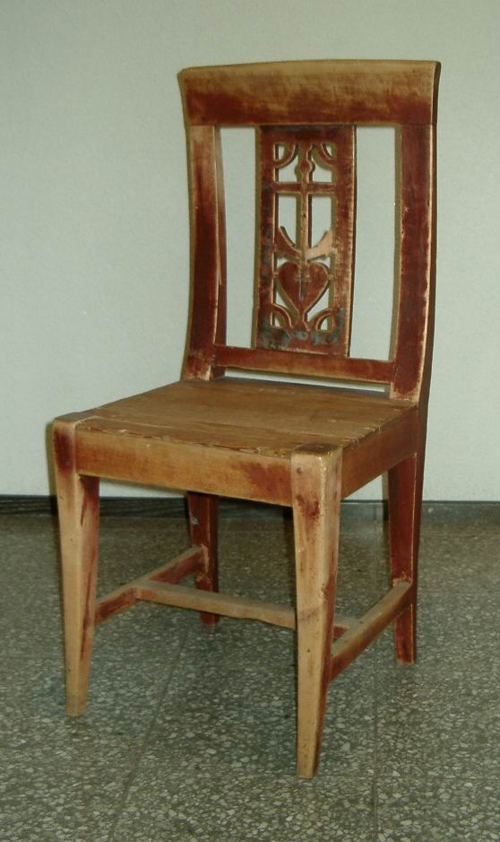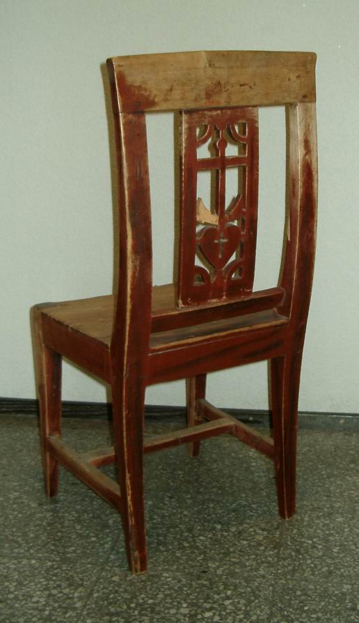 stolen har jag mätt upp på Ålands museum Vi kallar den "Tro hopp och kärlek" Det är synbolerna i ryggen som gör att vi tycker namnet passar. Åland är och har varit en bygd av sjöfarare. Dom sista stora segelfartygen köptes upp av en Ålänsk redare, som drev dom på den så kallade vetetraden.