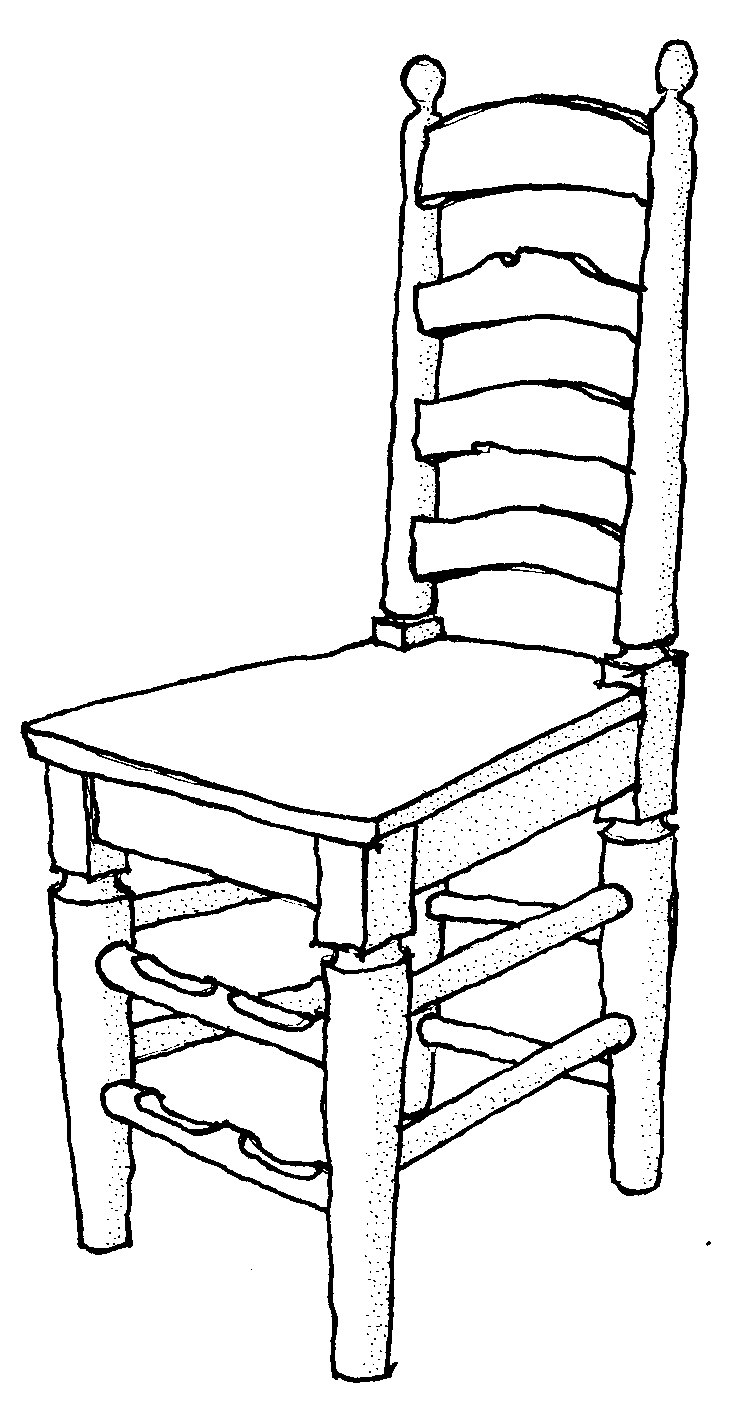 Stol från Marums socken Detta är en mycket vacker stol av så kallade stegmodellen heter på engelska ladder-back-chair. En vanlig stol på 1700-talet, som ursprungligen kommer från Indien. Extra rolig att bygga. Kostar 95:00 SEK